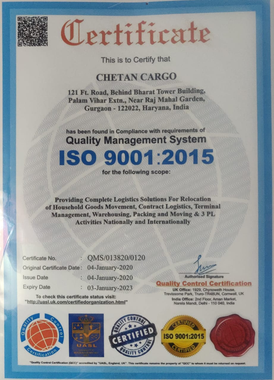 CHETAN CARGO has been engaged in the business of transportation and handling of goods by road since 1990. CHETAN CARGO AN ISO 9001: 2008 CERTIFIED COMPANY. We are approved from the Indian Bank's Association (I.B.A) under the Code No.DLA-860. We have been rendering our services since last 30 years and have the perfect blend of experience and infrastructure to caterer our customer’s individual demand. Company has its presence nationally for providing transportation needs and also providing warehousing facility.